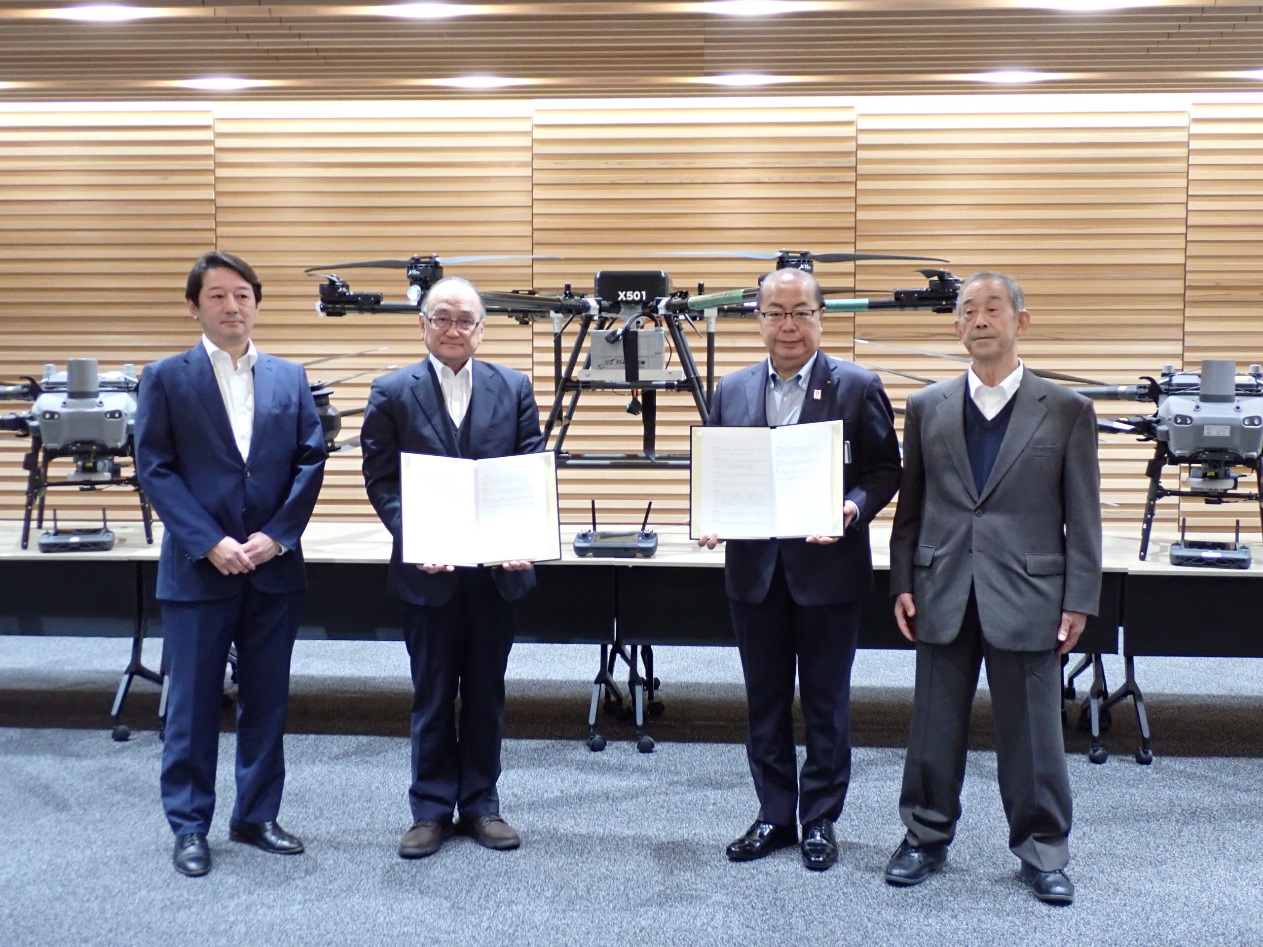 本日12月9日(月)、11時より、富山県と弊協会とで「災害時におけるドローンを活用した物資運搬等に関する協定」締結式が執り行われました。